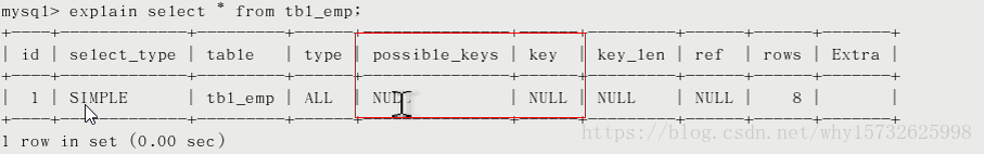 possible_keys显示可能应用在这张表中的索引,一个或多个。查询涉及到的字段上若存在索引,则该索引将被列出,但不一定被查询实际使用。