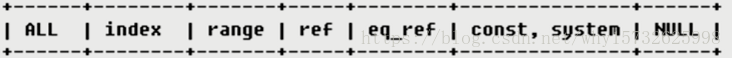 type所显示的是查询使用了哪种类型,type包含的类型包括如下图所示的几种: