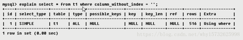 | id | select_type | table | type | possible_keys | key | key_len | ref | rows | Extra |